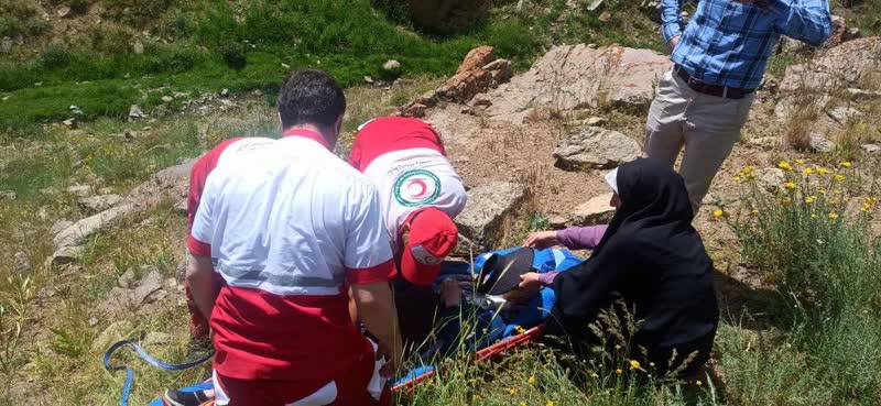 امداد رسانی هلال احمر به زن گرفتار در کوه های طارم