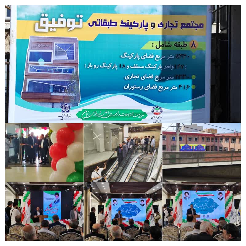 مجتمع تجاری و پارکینگ طبقاتی توفیق زنجان با حضور معاون توسعه و مدیریت منابع استاندار زنجان، رییس و اعضای شورای اسلامی شهر و شهردار زنجان به بهره برداری رسید.