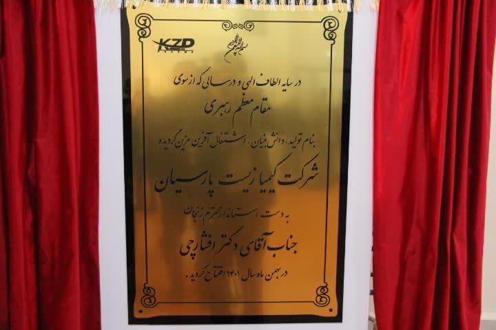 در دومین روز از ایام الله دهه فجر ، شرکت دارویی کیمیا زیست پارسیان به عنوان نخستین واحد تولید دارو در استان با حضور استاندار، امام جمعه زنجان، مدیر کل سازمان صمت استان و دیگر مسئولان مورد بهرهبرداری قرار گرفت.